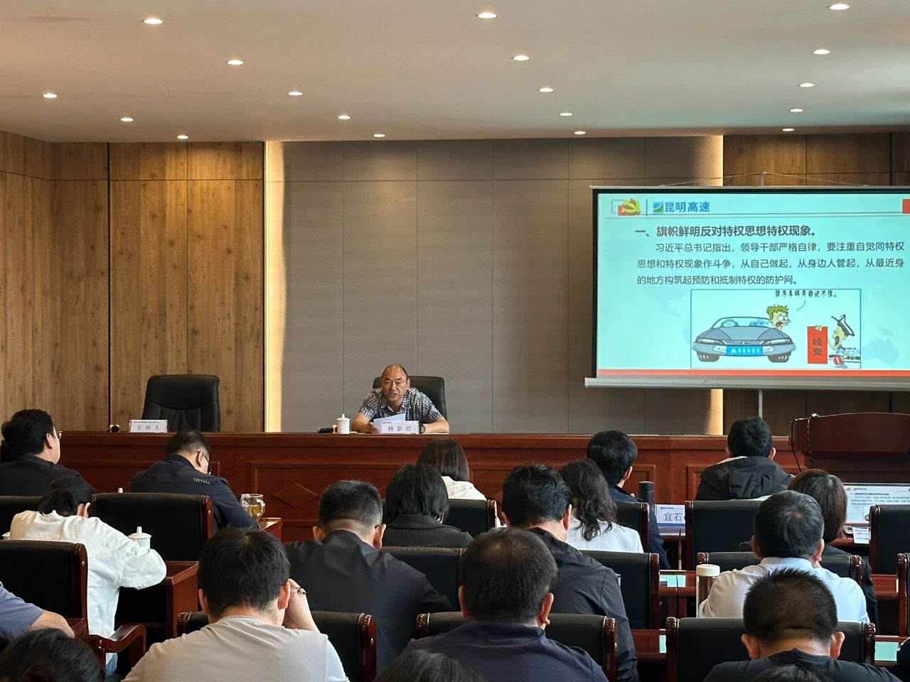 2024年6月26日,昆明高速公路公司黨委委員、總工程師楊新紅以“嚴(yán)守黨規(guī)黨紀(jì) 自警自律 自我約束 筑牢廉潔防線”為題講授黨紀(jì)學(xué)習(xí)教育專(zhuān)題黨課。